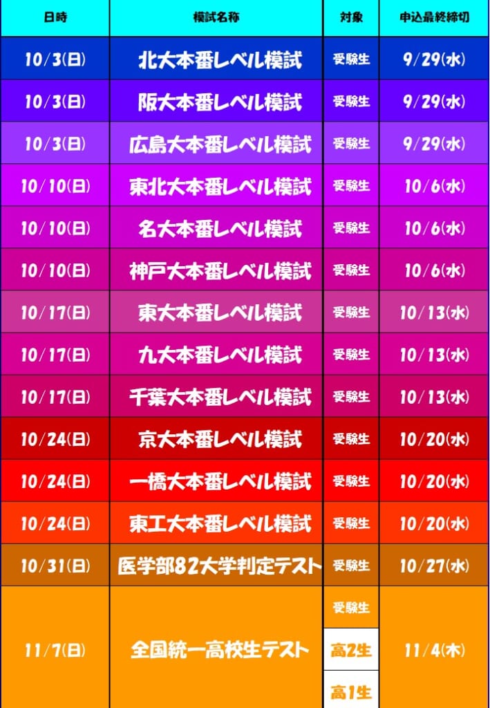 11月7日(日)に実施される、『全国統一高校生テスト』を控え東進衛星予備校では「